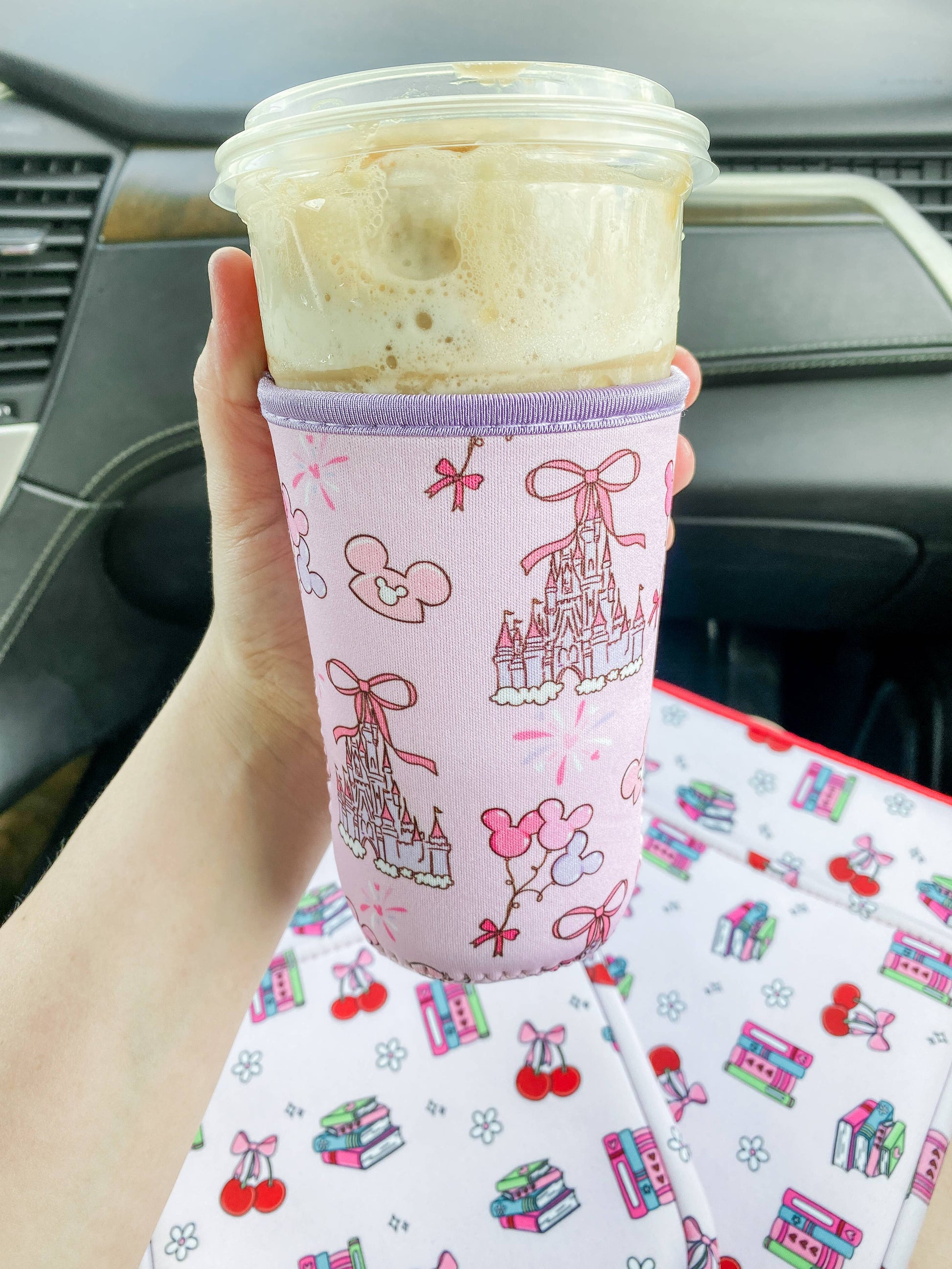 Medium one holds a venti from Starbucks and a medium from Dunkin. Your order includes one iced coffee sleeve.