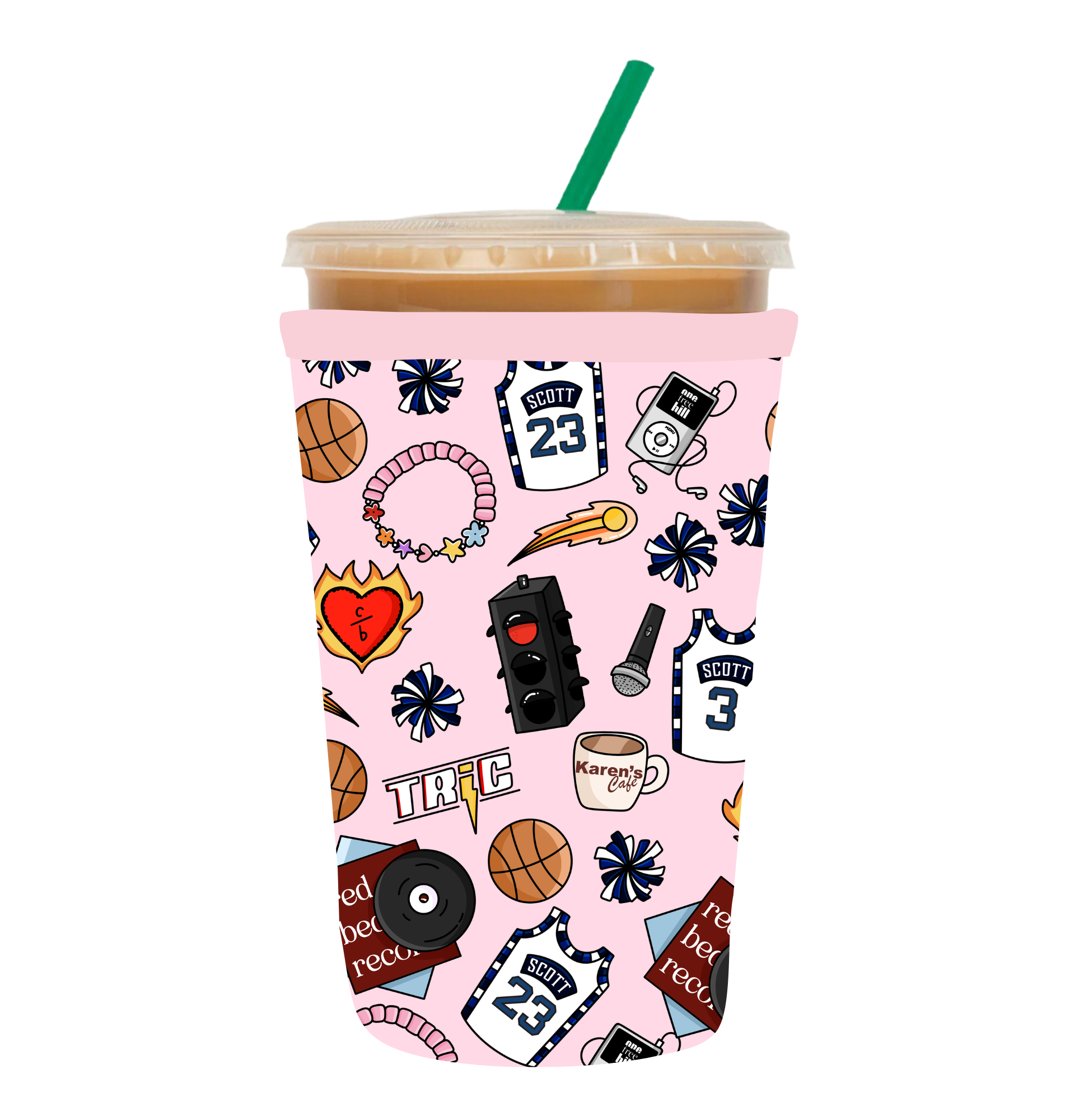 Medium one holds a venti from Starbucks and a medium from Dunkin. Your order includes one iced coffee sleeve.